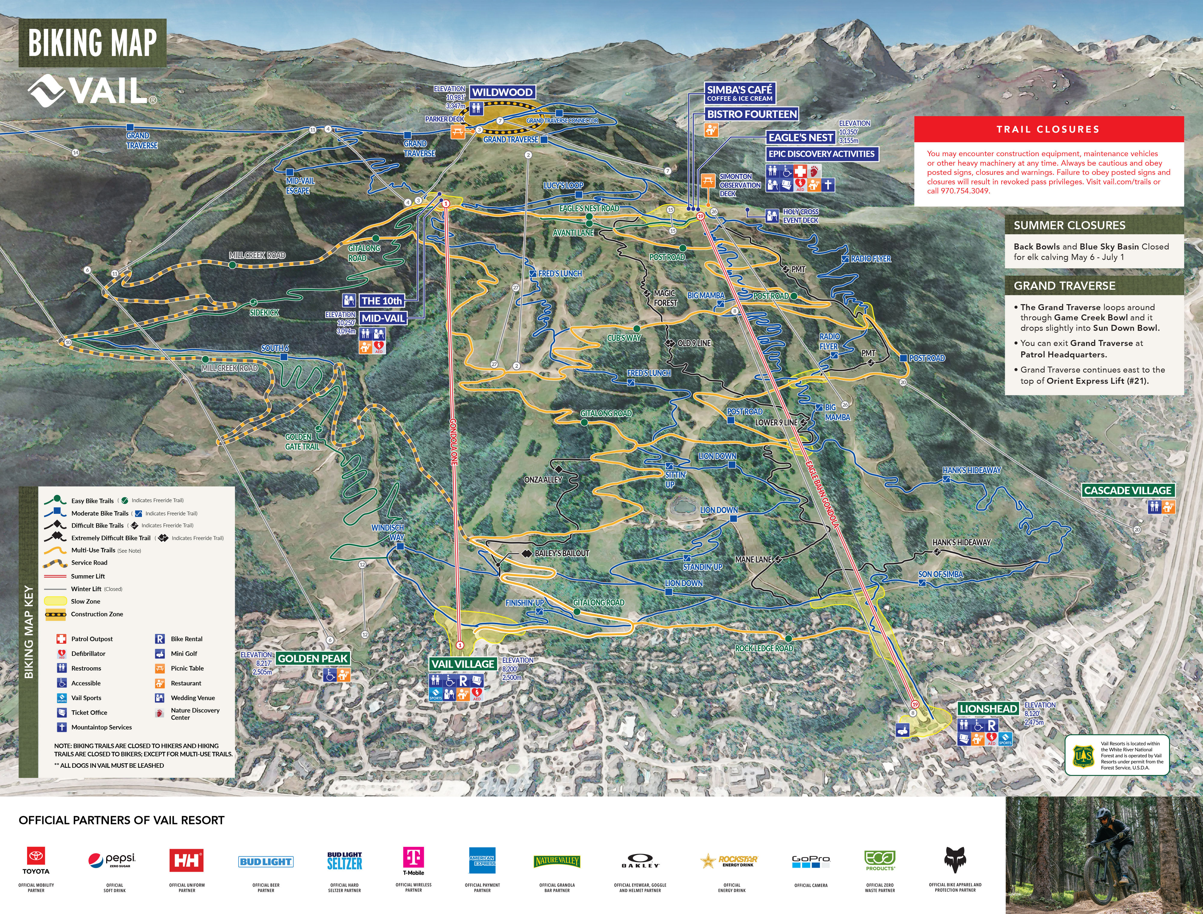 Like most of the Vail Valley, Vail Mountain is best explored on bike. Enjoy amazing views and adventure for all ability levels. Vail Mountain has plenty of trails for all level of riders.